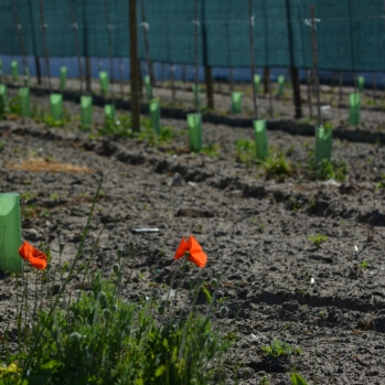 Entre as fileiras de vinhas, é costume de longa data plantarem-se macieiras.
