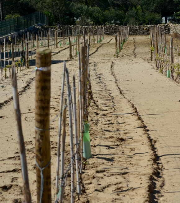 As raízes das vinhas são colocadas a 4/6 metros de profundidade, sendo necessário escavar o chão de areia até ser encontrada terra para plantar os bacelos (vara de videira).